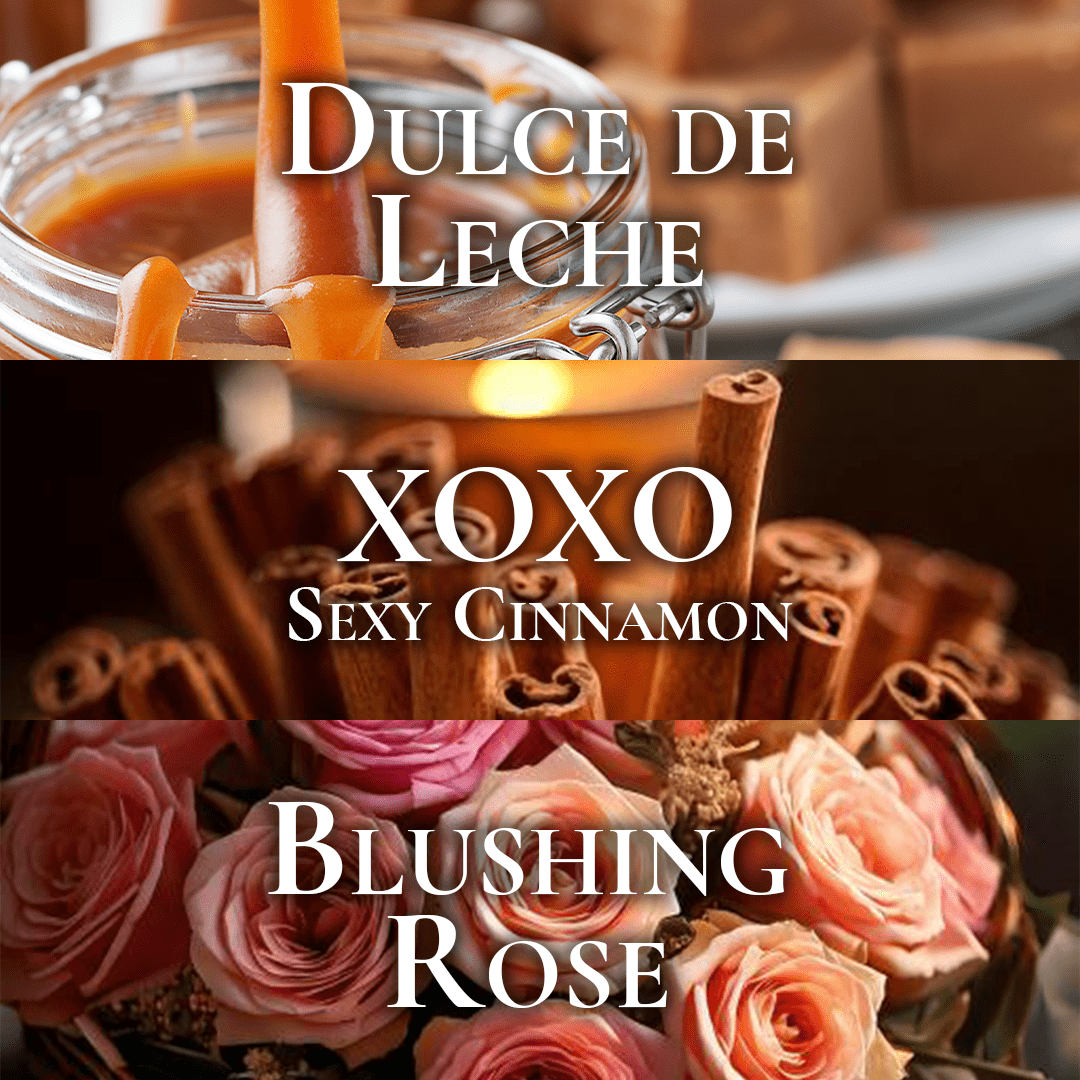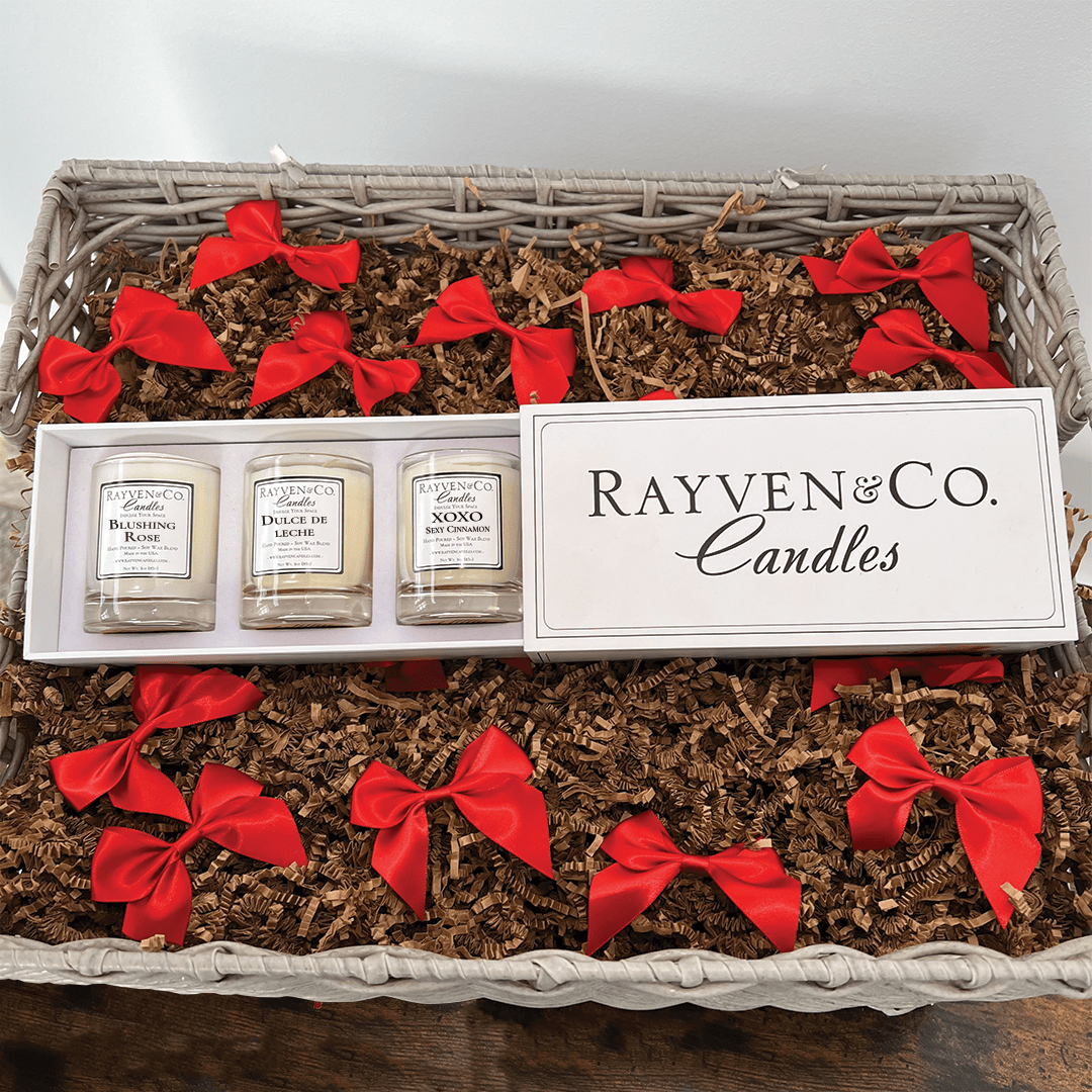The Rayven & Co. Candles Valentine's Day Gift Set brings together three enchanting fragrances in a beautifully curated collection. Immerse yourself in the spicy warmth of XOXO Sexy Cinnamon, the romantic essence of Blushing Rose, and the sweet indulgence of Dulce de Leche. Perfect for celebrating love and affection, this set offers a harmonious blend of passion, tenderness, and sweetness, all in convenient 3oz sizes. Whether you're creating a cozy atmosphere or indulging in a moment of romance, this gift set is the perfect way to embrace the spirit of Valentine's Day.
